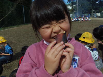 できあがった焼き芋を一ついただき、みんなで試食しました。