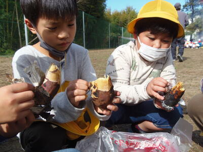 小学1・2年生も到着し、焼き芋づくり体験に挑戦しました。