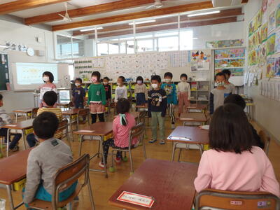 2年生は、国語の勉強をしていました。担任の先生の発問に対して、答えていました。