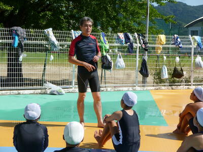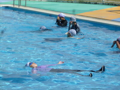 6年生は、水泳の最後の授業で、着衣泳を廣瀬校長先生から教えていただきました。