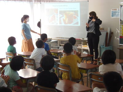 さっそく、2年生と勉強しました。写真を見ながら、楽しく英語を学んでいました。