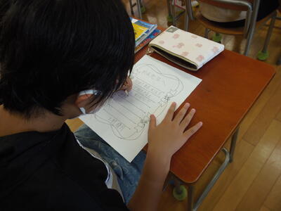 2年生は、言葉の形として、本を読んだことから思い浮かんだことを絵で表す授業です。