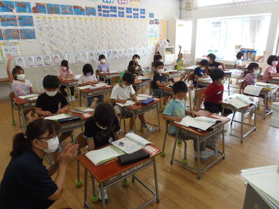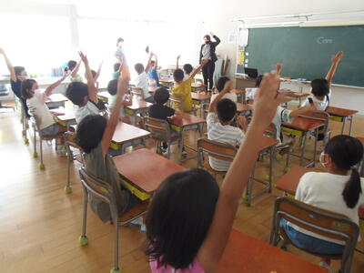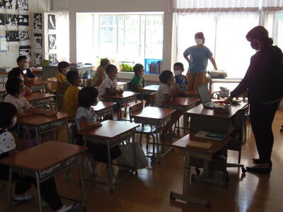 感染防止のため、グループでの共同学習ができませんが、先生方の工夫もあり楽しい授業が展開されていました。