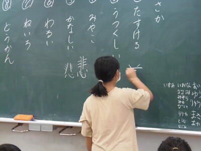 小学3年生は、国語の授業で「美しい」の書き順の確認をしているところです。