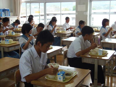いただきますの後は、一心不乱に食べ始めました。午前中体育の授業もあり、お腹がすいていたようです。