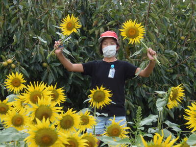一般のお客さんも多く、子どもたちが植えたひまわりを見学されていました。