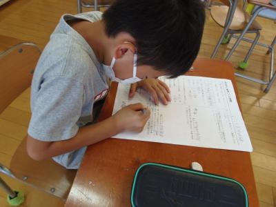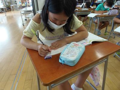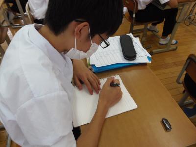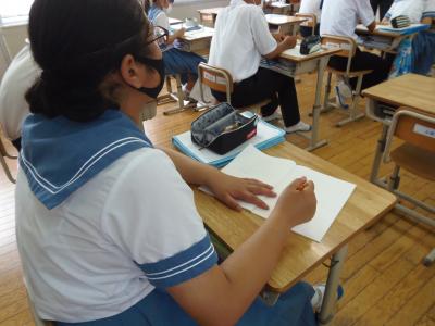 1年生は、前期に頑張ったことや夏休みに頑張りたいことをまとめていました。入学してからのことを振り返り書いていました。