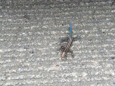 ↓ めずらしいしっぽが青いトカゲ?を小学生が見つけて、「先生写真撮って!」と頼まれて撮った写真です。なんというトカゲ?なんでしょう?