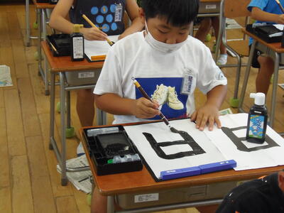 ↓ 5・6時間目の書写の授業です。前回同様、西村先生を講師にお呼びし、習字を勉強しました。