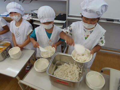 8月30日(月)の給食準備の様子