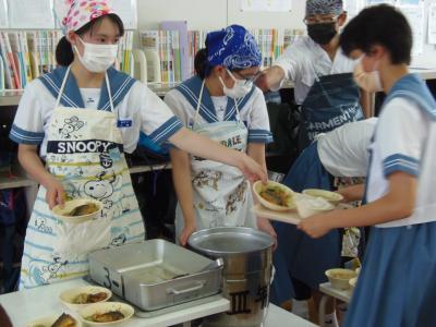 6月21日(月)給食準備の様子(中学1年生)