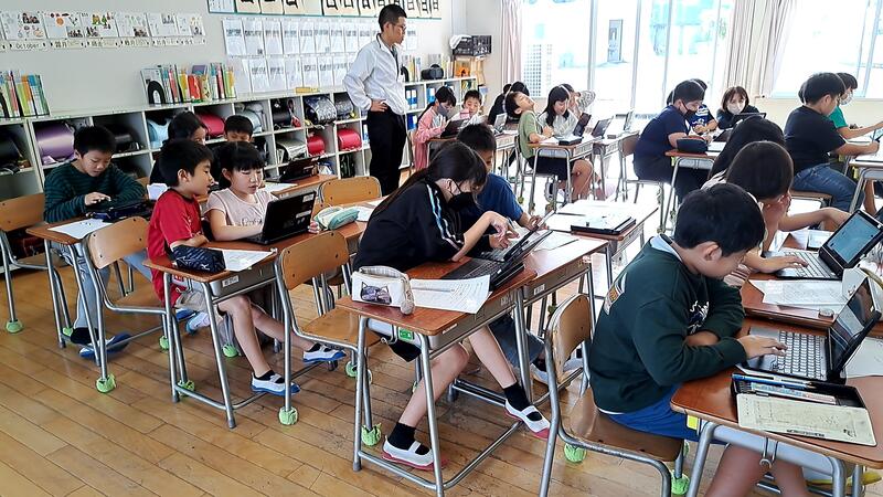 小学4年生は、温度によるものの体積の変化について調べたことをまとめていました。タブレットPCの中に実験結果を記録してあるので、すぐに確認することができます。記録って大事ですね!