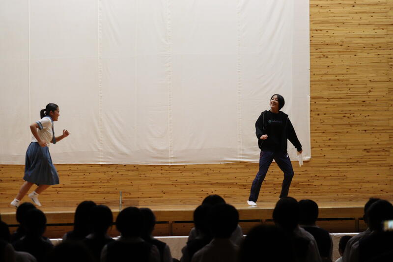 9月に行った職場体験をもとに、学んだこと、考えたことを、プレゼンテーションと寸劇で発表してくれました。役者ぞろいの2年生、ユーモアを交えながら、堂々と発表してくれました。「働くことは『誰かのために』」という言葉がとても心に残りました。