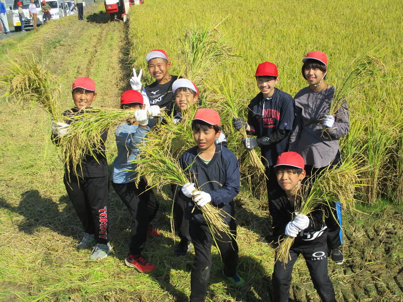 小学5年生は、稲刈りでした!お天気がよくて本当によかったです。JA青壮年部のみなさまには、苗作りから水田の準備、夏の水の管理など、大変お世話になりました!おかげさまで、今年も豊作!子どもたちは大喜びでした!先日のいもほりもそうですが、地域の方々のたくさんのご協力があり、さまざまな体験活動を実施できる本校は、とても恵まれています。子どもたちは本当に幸せですね。地域のみなさま、いつも本当にありがとうございます!