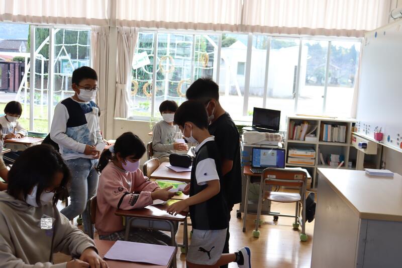 小学4年生は、国語で、「和」のよさと「洋」のよさについて、自分の考えをまとめていました。お互いに意見を交換しながら、考えを深めていました。なんだか最近、とっても大人びた表情を見せるようになった4年生です。みんなどんどん成長しますね。