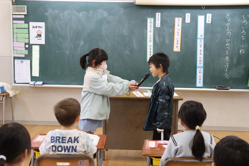 小学1年生は、国語で書いた作文をグループごとに発表していました。発表も聞き方もとっても上手でした!