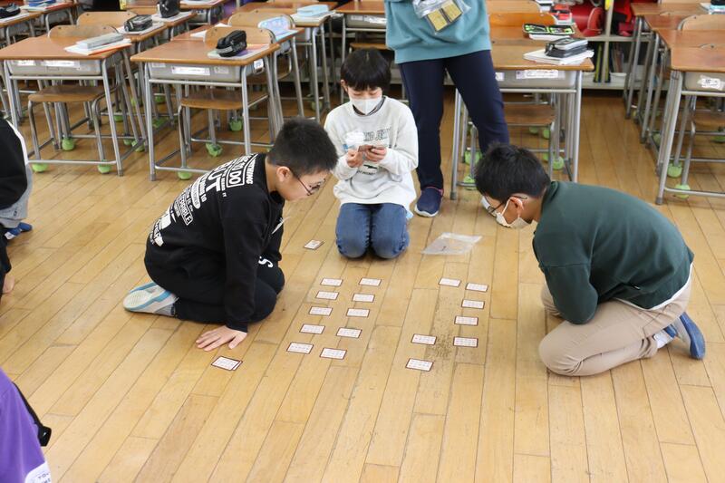 小学4年生は、百人一首に挑戦していました!言葉は少し難しいですが、しっかり聞いて、札を探していました!慣れてくると、もっとはやくとれることでしょう。