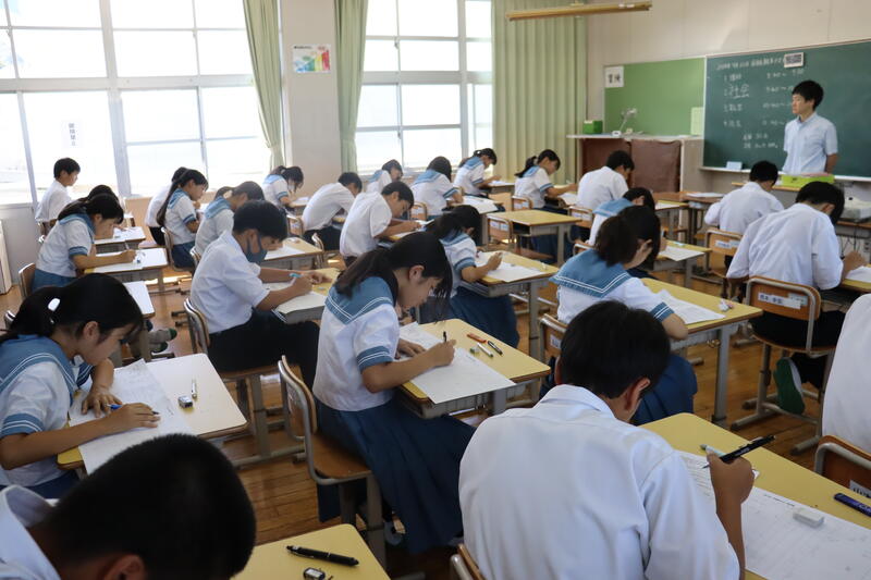 生徒は問題に集中し、学習してきたことを思い出しながら、時間いっぱい取り組んでいました。