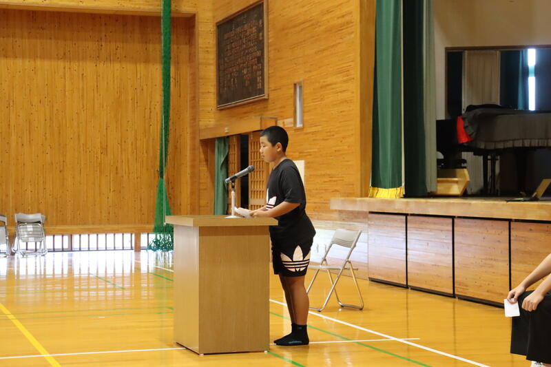 副校長の話のあと、児童生徒の代表各1名が前期の反省と後期の目標を発表しました。