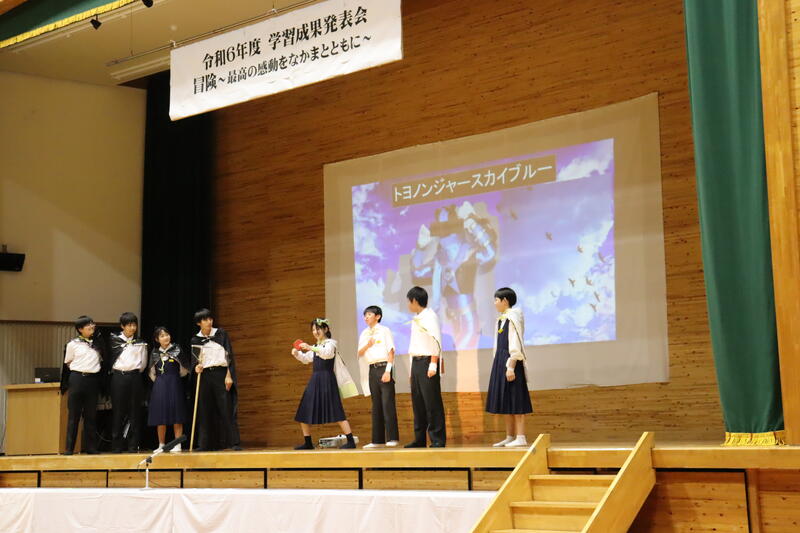 生徒は総合的な学習の時間に学んだことを、劇で表現したりプレゼンテーションソフトを使ってまとめたものを発表したりしました。