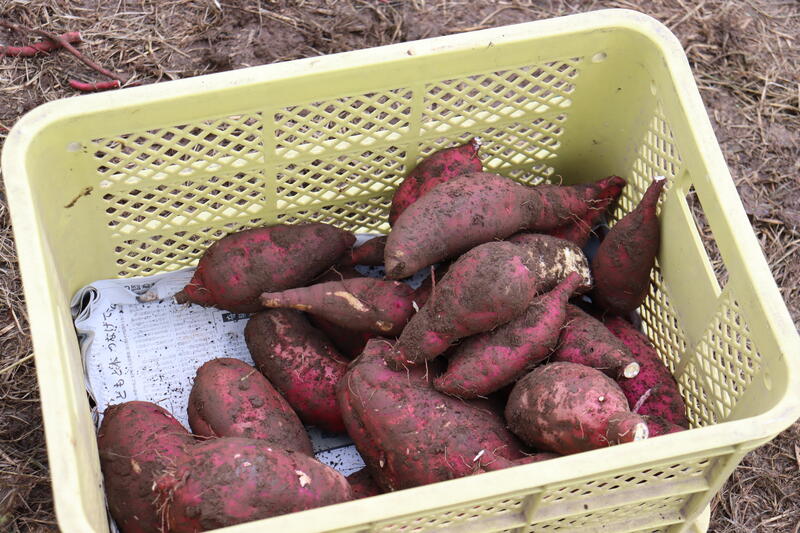 10月28日(月)、老人クラブの方々にご協力いただき、芋ほり(小学1・2年生、中学1年生)を行いました。