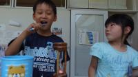 ↓ ゴーヤをおいしそうに笑顔で食べています。