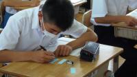 ↓ 中学2年生は、学力テストの英語のリスニングテストを受けています。