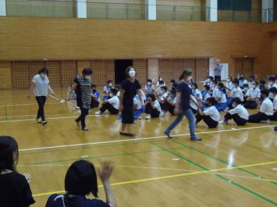 ↓ 小学2年生は、シャバーン先生と担任の吉田先生が英語の授業をしていました。