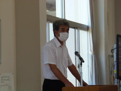 最初に、オンラインによる前期後半の開始式を行いました。小学校は廣瀬校長から、中学校は淀川副校長から夏休みの頑張りや新型コロナウイルス感染症の対策などについて、話をしました。また、新型コロナウイルス感染症に伴う、誹謗中傷や差別等は絶対に許されないということ確認し、この大変な時期を先生方と一緒に乗り越えて行こうと話したところです。