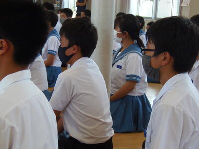 ↓ 中学生は、それぞれの学年の代表生徒が発表してくれました。