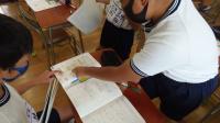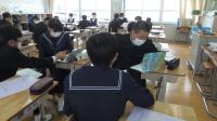 ↓ 4時間目に授業の様子です。中学3年生は、英語の授業です。2人組になって英文の問題を出し合っていました。さすが3年生、受検生として自覚がみられました。