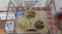 今日の給食は、たけのこごはん、玉ねぎの味噌汁、いわしの生姜煮、即席漬け、牛乳です。エネルギーは、小学校567kcal、中学校724kcalです。