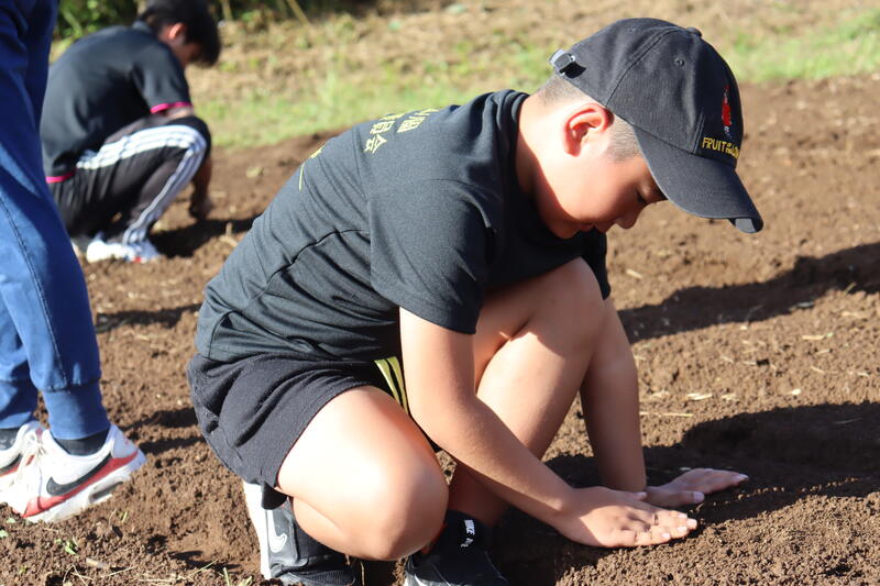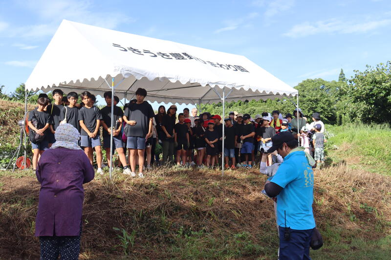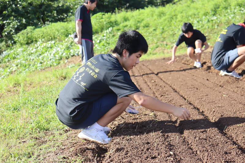 7月19日(土)に小学3年生と中学3年生がひまわり園の種まきを行いました。