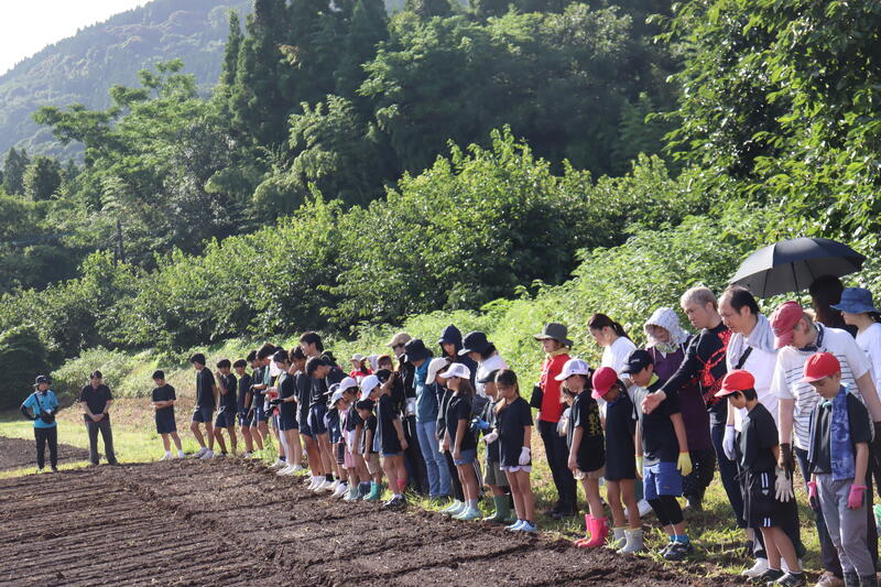 事前に関係の皆様が畝を作って種を埋める穴を空けてくださっていました。