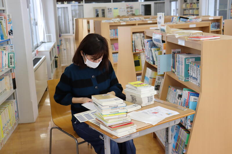 図書館では、図書システムへの移行に向けて、終日、ラベル貼りの作業が行われています。保護者の方、地域の方にもご協力いただいています。お忙しい中、本当にありがとうございます!