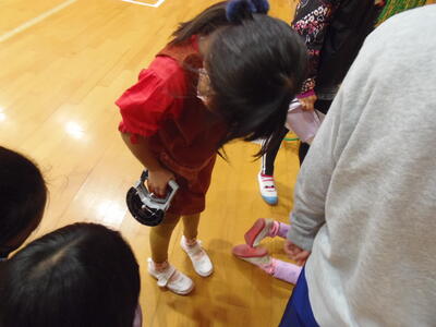6年生がやり方を教えて、測定していました。