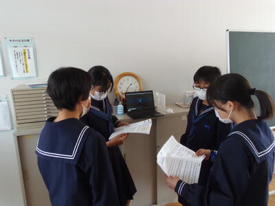 中学3年生の歌の練習の様子です。それぞれのパートに分かれて頑張っていました。