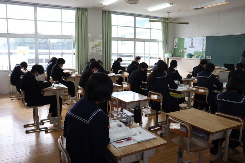 中学2年生は国語で、漢詩を読んでいました。中村先生の格調高い授業です。