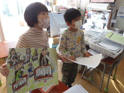 新1年生へのビデオメッセージの練習をがんばっていました。例年なら新一年生の体験入学の際に発表しますが、今年は、コロナの関係で中止になりましたので、その様子をビデオに録り、4月に新入生に見せるようにしています。