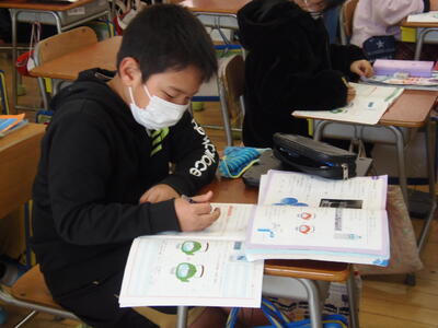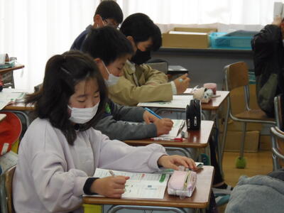 4年生は、理科の授業でした。学んだ内容を振り返った後、確認テストに挑戦していました。