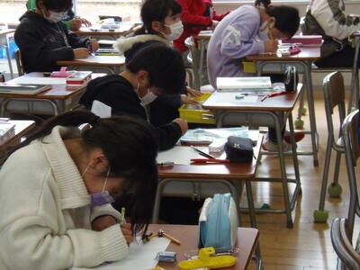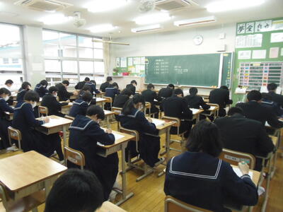 中学1・2年生は、今日と明日、後期の期末テストに取り組んでいます。