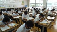 ↓ 2年生は、社会、国語、数学のテストを受けます。明日は、英語と理科です。