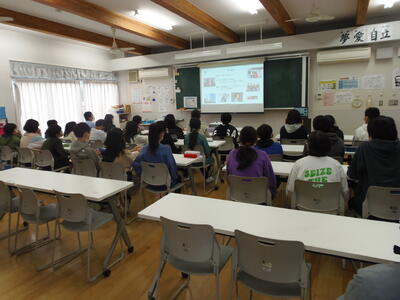 慈恵病院の竹部看護部長を講師に、冒頭では現在慈恵病に入院中の出産されたばかりのお母さんと子どもさんが出演されました。そのこともあり、5・6年生も映像を食い入るように見ていました。