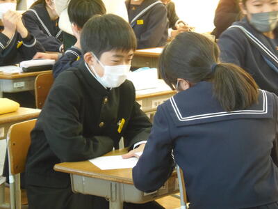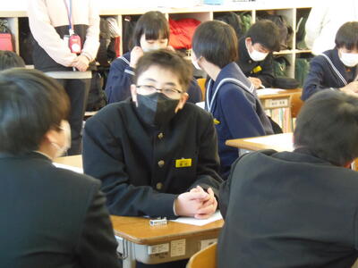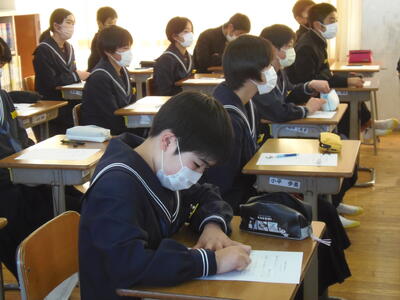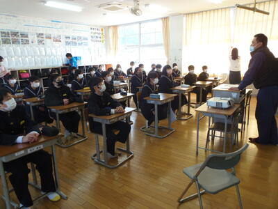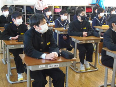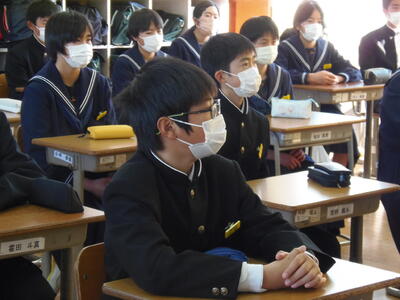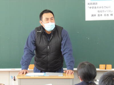 蓮本さんを講師に迎え、中学1年生を対象に進路講演会がありました。