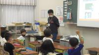 ↓ 小学3年生の総合的な学習の時間の様子です。今日は、豊野ひまわり園実行委員会から里永様、伊藤様、岩山様をお迎えし、「うきうき豊野ひまわり園」のことについて教えていただきました。