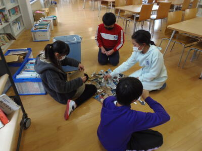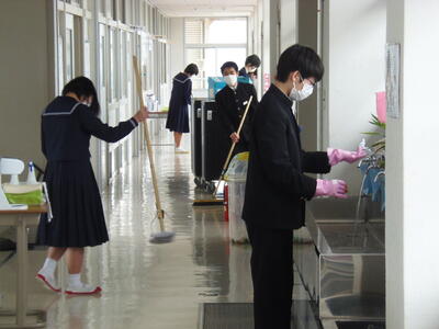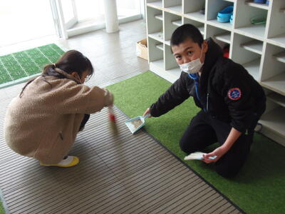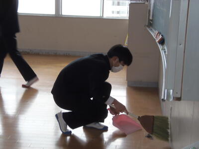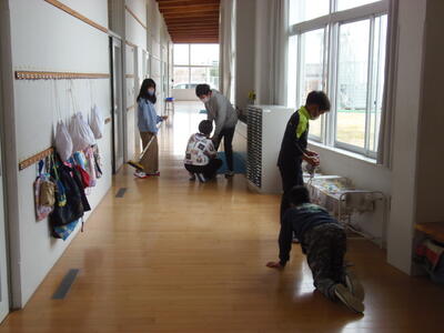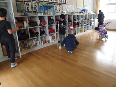 縦割り班で、1年生から3年生が入り混じって掃除をします。