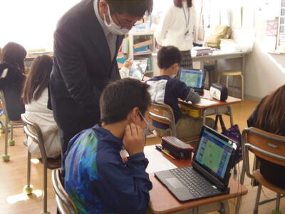 3時間目は、佐田先生が小学4年生の授業で研究授業を行いました。小学3年生と同様、審議員の先生に授業を見ていただきました。