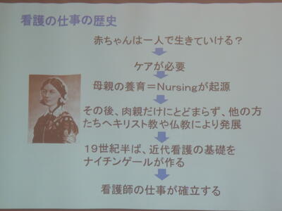 「未来ある皆さんに伝えたいこと、産婦人科の現場から」という演題で、慈恵病院看護部長の竹部様からお話をいただきました。