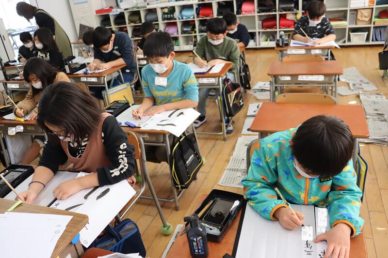小学3年生の書写の授業に、習字の先生、西村先生がきてくださいました。この一年間、西村先生の丁寧なご指導を受けて、習字がとっても上手になりました!