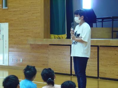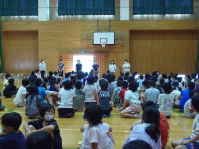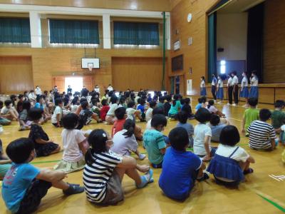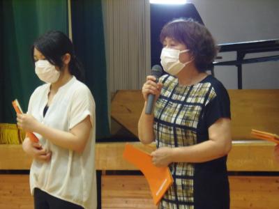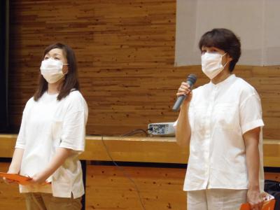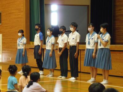 ↓ 豊野町の給食センターが、7月中で終了になります。そのため、今までお世話になった給食調理員の方々にお礼を伝える給食ありがとう会を児童会と生徒会の主催で開催しました。
